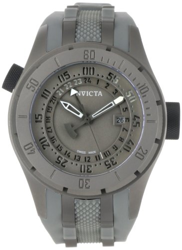 • Water resistant: 100 metersIf you're looking for the latest in timepiece technology, look no further than the Invicta Men's Force Collection Grey Dial Grey Titanium and Rubber Watch. Its precise Swiss quartz movement, durable flame-fusion crystal, gunmetal titanium case, and grey polyurethane strap with gunmetal titanium accents define rugged styling. The grey dial with luminous gunmetal hands is easy to read and includes a date function. There is a rotating outer dial ring with Arabic numerals at five-minute intervals, a 24-hour scale inner dial ring, and a GMT function that will give you a great deal of information. This tough watch is water-resistant to 330 feet (100 meters).