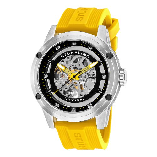 | Stuhrling Original Men's 314R.3316G65 Leisure Zeppelin 360 Automatic Skeleton Yellow Rubber Strap Watch | ||